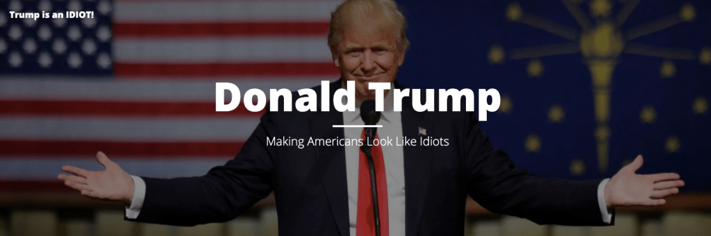 Aşağıda TrumpIsAnIdiot.com domainine girince karşımıza çıkan ekranı görüyoruz: