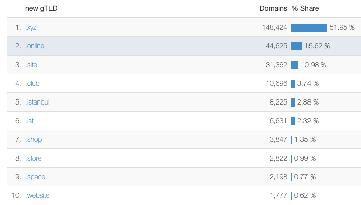 There are 1,189 new strings and only around half of them have general availability. That makes the average registration number for per string is only around 55,000. Sadly, there are LOTS of strings which have a very, very low registration numbers.